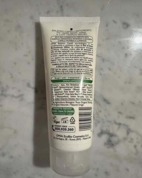 Ho provato questa marca di balsamo della Omia. A differenza di altre marche super costose, questa maschera è adatta a soddisfare un budget relativamente basso. Cercavo un balsamo delicato per le mie lunghezze e soprattutto un tipo di balsamo privo di oli e siliconi che tendono ad appesantire il capello. I miei capelli durante il lavaggio tendono di solito a stropicciarsi e necessito perciò di un balsamo districante che elimini tutti i nodi che io stessa mi creo con il massaggio sulla cute. Grazie a questo balsamo posso dire addio ai nodi e soprattutto alla sofferenza causata dallo strappare i capelli dal pettine. Non appesantisce , si rimuove in fretta con il risciaquo con acqua fredda e rende morbidi i capelli .