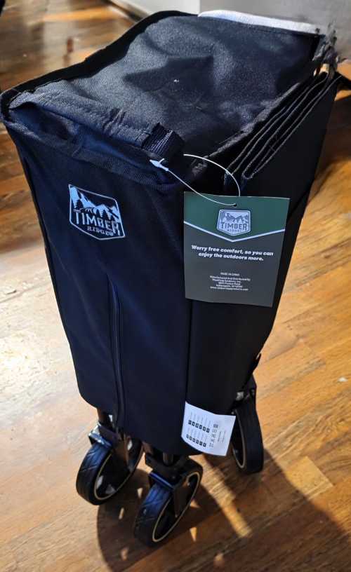 Il carrello Timber Ridge XXXL è racchiuso in un grande sacchetto di plastica, che può essere aperto. La maniglia è su un lato e una cinghia sull'altro. Usando queste due prese, si tira il carrello, poi delicatamente, leggendo il piccolo e semplicissimo manuale in dotazione, in un quarto d'ora il carrello è pronto. Per chiuderlo, le istruzioni si trovano anche nel manuale.