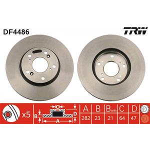 TRW Disco Freno Ventilato Anteriore DF4486 - Altezza 47mm, Diametro Esterno 282mm