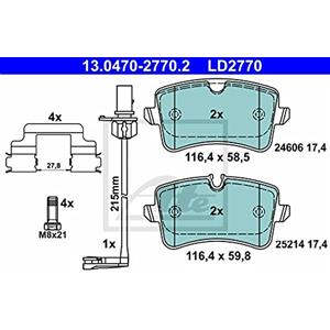Ate Pastiglie Freno Ceramiche 13.0470-2770.2, Posteriore, Altezza 58.5/59.8 mm, Larghezza 116.4 mm, Contatto di Usura Incluso