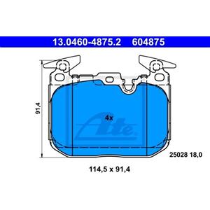 ATE Pastiglie Freno Anteriori 13.0460-4875.2 - Altezza 91,4 mm, Larghezza 114,5 mm, Predisposte per Contatto Usura