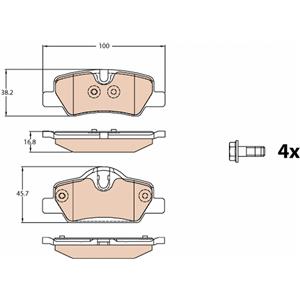 TRW GDB2088 Set di Pastiglie Freno Posteriori - Altezza 38.2/45.7 mm, Larghezza 100 mm, Preparazione Contatto Usura