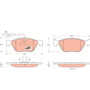 TRW GDB1212 Pastiglia Freno Anteriore con Contatto di Usura - Altezza 61,6 mm, Lunghezza 156,4 mm