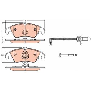 TRW GDB1768DTE - Set di Pastiglie Freno Anteriori per Audi A4, Altezza 73,1/73,6 mm, Larghezza 188 mm, Bassa Polvere