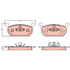 TRW Set di Pastiglie Freno Anteriori GDB2159 - Altezza 61.7mm, Larghezza 146mm, Spessore 17.8mm, Compatibile con SEAT e VW