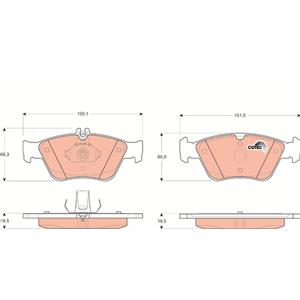 TRW GDB1628 Kit Pastiglie Freno Anteriori per Mercedes B-Class (W245) - Altezza 70mm, Larghezza 131.8mm, Spessore 19.5mm