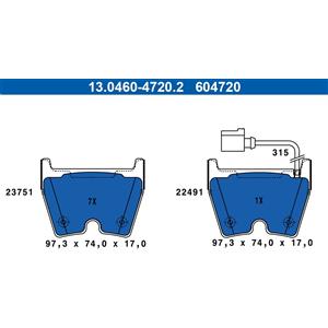 ATE Set di Pastiglie Freno Anteriori 13.0460-7311.2 con Contatto di Usura, Compatibile con FIAT 500X e JEEP Renegade