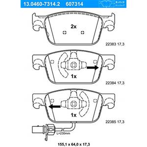 ATE Kit Pastiglie Freno a Disco Anteriori - Altezza 64mm, Larghezza 155.1mm, Contatto di Usura Incluso