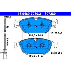 ATE Kit Pastiglie Freno Anteriori 13.0460-7280.2 - Altezza 71mm, Larghezza 193mm, Contatto Usura