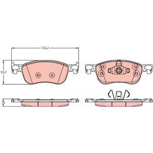 TRW Kit pastiglie freno GDB2186 per Ford Fiesta Mk7 - Altezza 55.3mm, Larghezza 155.2mm, Spessore 16mm