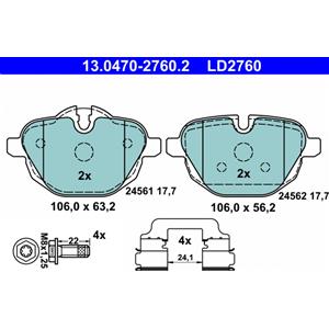 ATE Set di Pastiglie Freno Ceramiche 13.0470-2760.2 per Asse Posteriore con Accessori Inclusi