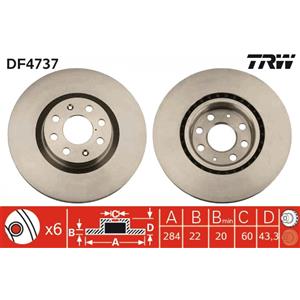 TRW Disco Freno DF4737 Anteriore Ventilato 284mm per Fiat Grande Punto e Opel Corsa