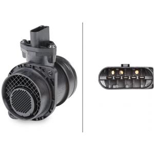 HELLA Misuratore di portata massica dell'aria 8ET 009 149-361 - 70mm, 5 poli, Bocchettone di tubo, compatibile con VW Golf V