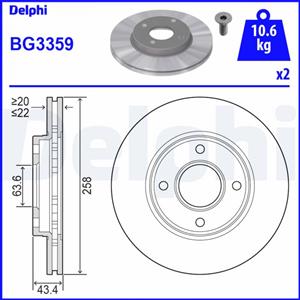 DELPHI Disco Freno Anteriore Ventilato Ø258mm, Altezza 43mm, Spessore 22mm, Compatibile con Ford