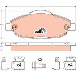 TRW GDB1761 Set di Pastiglie Freno Anteriori per Peugeot 3008 e 308 - Altezza 61.5mm, Larghezza 151mm, Spessore 17.8mm