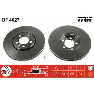 TRW DF4027 Disco Freno Ventilato Anteriore 288mm, Alta Carbonizzazione