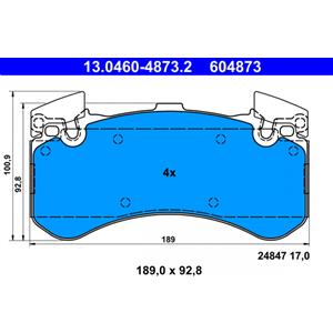ATE Set di pastiglie freno anteriore 13.0460-4873.2, Low-Metallic, Altezza 92.8-100.9 mm, Larghezza 189 mm