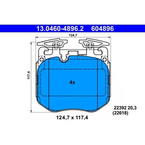 ATE Set di pastiglie freno anteriore 13.0460-4896.2 - Low-Metallic, Altezza 117.4mm, Larghezza 124.7mm
