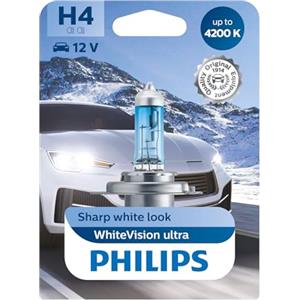 Philips Lampada Alogena H4 WhiteVision Ultra 12V 60/55W - Colore Bianco 4200K con Effetto Xenon