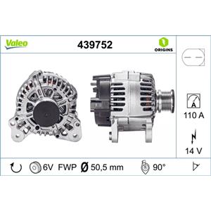 Valeo Alternatore 439752 - 110 Amp, 6 Alette, 50,5 mm Puleggia, 14 V