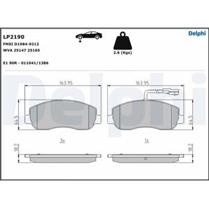 Delphi LP2190 Pastiglia Freno Anteriore - Low-Metallic, 64mm x 164mm, Cinque Strati di Qualità, Compatibile con Nissan, Renault, Vauxhall-Opel