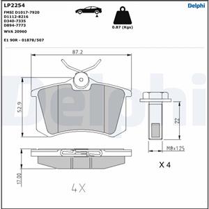 Delphi LP2254 Pastiglie Freno Posteriore Low-Metallic - Altezza 53mm, Larghezza 87mm