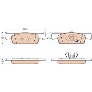 TRW GDB2016 Kit Pastiglie Freno a Disco Anteriori - Altezza 42mm, Larghezza 140.2mm, Spessore 18mm