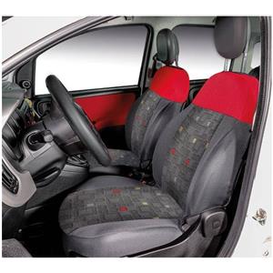 CORA Coprisedili Anteriori Personalizzati per Fiat Panda 12 - Tessuto Misto Cotone e Poliestere Quadri Grigio/Rosso