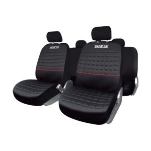 Sparco SPC1042 Set Coprisedili Universali per Auto Nero/Rosso, Compatibili con Airbag, Facili da Pulire
