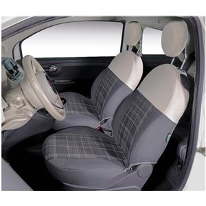 CORA Coprisedili Anteriori Personalizzati per Fiat 500 (2007) - Tessuto Misto Cotone Scozzese Grigio/Panna con Imbottitura in Spugna