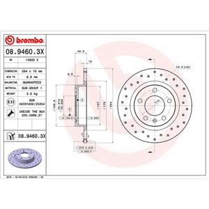 Brembo Xtra Disco Freno Forato Posteriore Ø264mm - Set di 2, Altezza 41mm, Spessore 10mm