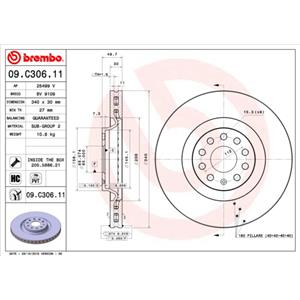 BREMBO Disco Freno 09.C306.11 Ventilato, Carbonizzato, Diametro 340mm, Spessore 30mm, 1 Pezzo