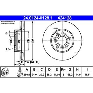ATE Disco Freno Ventilato 24.0124-0128.1 Anteriore, Carbonizzato, 280mm
