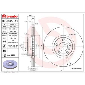 Brembo Disco Freno 09.9922.11 - Anteriore, Verniciatura UV, Diametro 348 mm, Spessore 30 mm