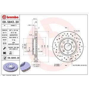 Brembo Xtra Line Disco Freno Forato 09.5843.3x - 2 Dischi, Diametro 257 mm, Rivestimento UV