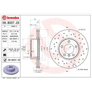 Brembo Xtra 09.B337.2X - Disco Freno Forato Anteriore, Altezza 73mm, Diametro 312mm, Materiale ad Alto Tenore di Carbonio