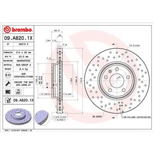 Brembo Xtra Disco Freno Anteriore Forato e Ventilato 09A8201X - Altezza 52mm, Diametro Esterno 314mm