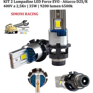 Simoni Racing Lampadine LED D1S Force EVO - 35W, 8600 lumen, 6500K, Kit di Conversione Faro LED