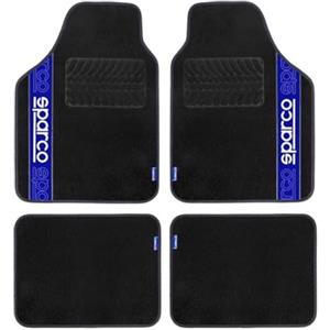 SPARCO Set di 4 Tappeti Universali in Moquette Blu/Nero con Logo e Attacchi di Sicurezza