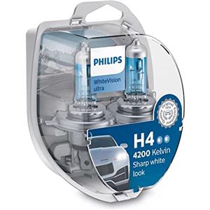 Philips WhiteVision Ultra H4 Lampada Fari Auto Alogena 12V/60/55W - Luce Bianca Intensa 4200K, Confezione Doppia