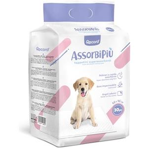 Record Assorbipiù Tappetini Igienici per Cani 60x90 cm - Confezione da 30 Tappetini Monouso, Extra Assorbenti e Antistrappo