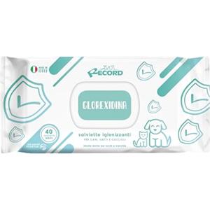 Record Salviette Igienizzanti Umide per Cani e Gatti - Confezione da 40 Pezzi con Clorexidina per Pelo, Zampe, Muso ed Occhi