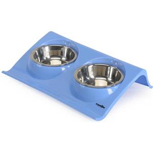 Camon Vassoio con Doppia Ciotola in Acciaio 150ML per Cani e Gatti