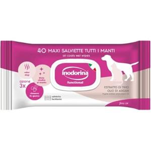 Inodorina Salviette Detergenti al Gelsomino - 40 Pezzi - Con Olio di Argan e Vitamine A, E, F per Cani e Gatti