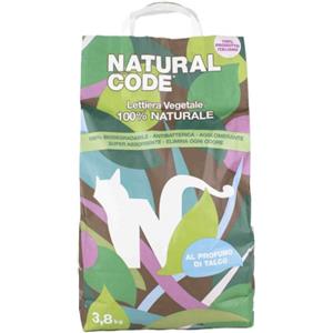 Natural Code Lettiera Vegetale Agglomerante al Talco per Gatti - 3,8 kg, 100% Naturale e Biodegradabile