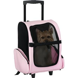 PawHut Trasportino Zaino 2 in 1 per Cani e Gatti - Rosa, con Tasche Laterali, Maniglia Telescopica e Ruote, 42x25x55cm