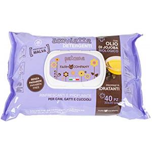Farm Company Salviette Umidificate per Cani e Gatti con Olio Biologico di Jojoba e Malva - 40pz, 30x20 cm, Senza Parabeni