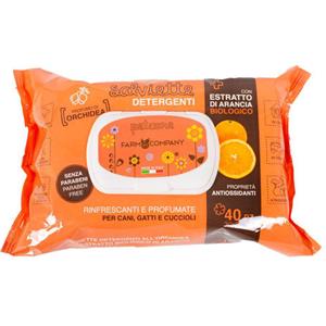 Farm Company Salviette Umidificate per Cani e Gatti con Estratto Biologico di Arancia e Orchidea - 40pz, 30x20 cm, Senza Parabeni
