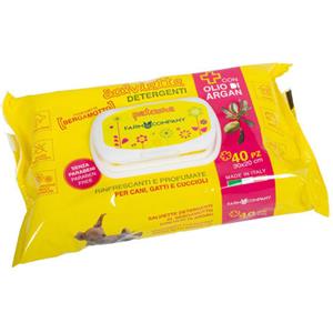 Farm Company Salviette Detergenti per Cani e Gatti all'Olio di Argan e Bergamotto - 40pz, 30x20 cm, Formula Senza Parabeni