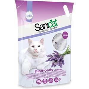 Sanicat Diamonds Lettiera in Perle di Gel di Silice con Aroma di Lavanda - Sacco da 15 Litri